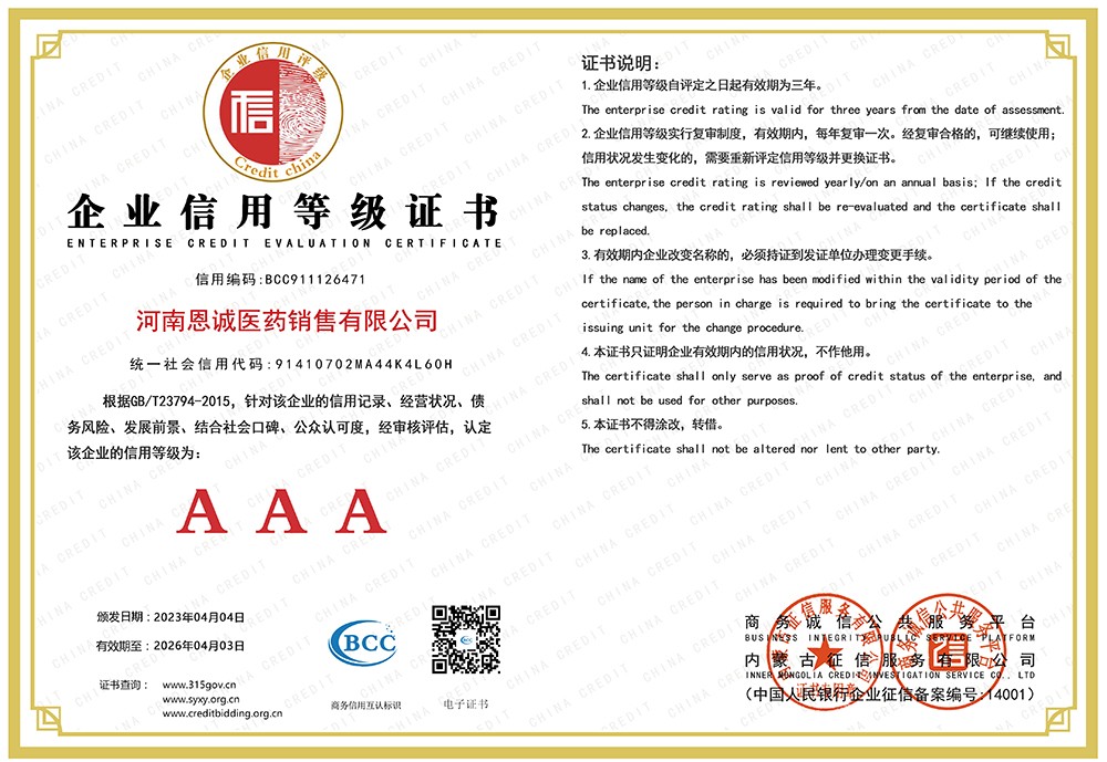 溫馨提示:  河南恩誠醫(yī)藥銷售有限公司    留言即可查看廠家聯(lián)系方式!
