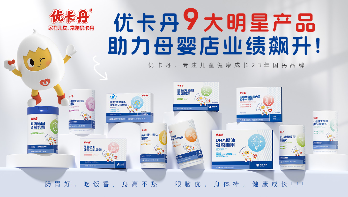 2022 年,優(yōu)卡丹從健康出發(fā)布局大健康行業(yè),開啟“制藥+功能性母嬰”雙航母格局。優(yōu)卡丹同一份堅(jiān)持應(yīng)用于未成年人大健康產(chǎn)品中,用嚴(yán)謹(jǐn)制藥標(biāo)準(zhǔn)定義功能性健康產(chǎn)品,專研更適合中國嬰幼兒和兒童青少年成長的保健食品、營養(yǎng)膳食、洗護(hù)日化、日常用品等家中常備功效調(diào)理型安心產(chǎn)品,全方位守護(hù)中國家庭兒女健康成長。醫(yī)研育養(yǎng),呵護(hù)成長,優(yōu)卡