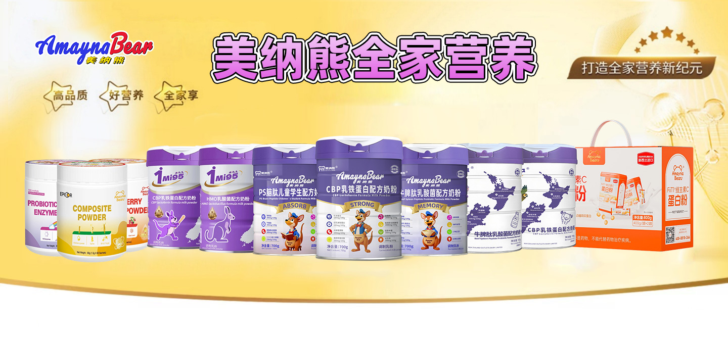 奶粉系列甄選新西蘭優(yōu)質進口奶源與高原生牛乳,秉承“聚合全球優(yōu)質營養(yǎng),喂養(yǎng)中國寶寶”的品牌理念,產品涵蓋:AmaynaBear乳鐵蛋白兒童配方奶粉、AmaynaBear牛脾肽乳酸菌配方奶粉、美納熊牛脾肽乳酸菌配方奶粉、美納熊CBP乳鐵蛋白配方奶粉、美納熊PS腦肽兒童學生配方奶粉、1Mi95 HMO乳酸菌配方奶粉、1Mi95 CBP乳鐵蛋白配方奶粉等多款產品,全面支持兒童在自護力、成長力、吸收力、認知力和視護力等方面的多維營養(yǎng)需求。