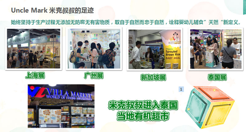 品牌名稱:米克叔叔 主營產(chǎn)品:米克叔叔輔食,米克叔叔糙米粉,米克叔叔零食 品牌特色:工藝獨特,營養(yǎng)均衡