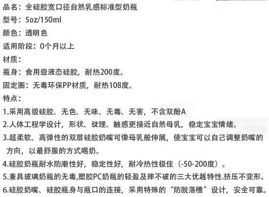 硅膠很柔軟,不用奶瓶刷用手也可以刷到奶瓶的各個角落,容易清洗。寶寶吸奶時,奶瓶會隨著奶水的減少而自動收縮,始終保持著瓶身內外氣壓一致,避免寶寶吸入過多的空氣而導致嗆奶、腹脹等不適,有效解決喂奶時脹氣的煩惱,從而達到自動呼吸的功能。