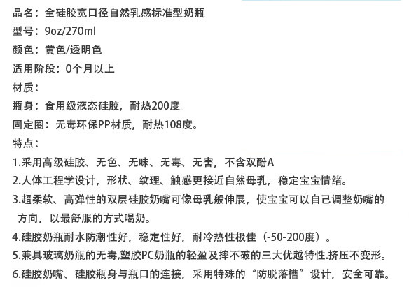 硅膠很柔軟,不用奶瓶刷用手也可以刷到奶瓶的各個角落,容易清洗。寶寶吸奶時,奶瓶會隨著奶水的減少而自動收縮,始終保持著瓶身內外氣壓一致,避免寶寶吸入過多的空氣而導致嗆奶、腹脹等不適,有效解決喂奶時脹氣的煩惱,從而達到自動呼吸的功能。