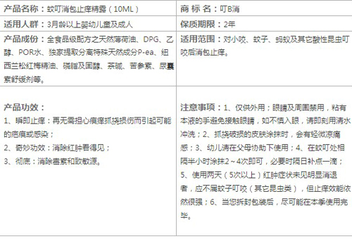 夏天蚊子多,一不小心就被咬得起包包了,又腫又癢怪難受的,有時好幾天都不能消散。普通的止癢產(chǎn)品大多含化學合成物質(zhì),長期或給寶寶使用,您總覺得不夠安心。現(xiàn)在您可以選購叮b消蚊叮消包止癢精露,很安全,效果顯著。