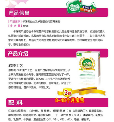 上海卡咪呢母嬰用品有限公司主營母嬰營養(yǎng)保健食品,產(chǎn)品原料來自有機農(nóng)業(yè)生產(chǎn)體系或野生天然產(chǎn)品,通過國家相關有機食品認證機構的嚴格檢測認證,現(xiàn)面向全國空白市場區(qū)域誠招代理商加盟。