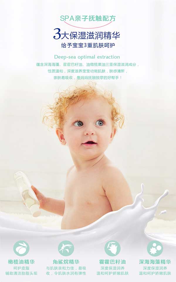 貝施康Spa潤膚油是 “深海優(yōu)萃”系列的母愛產(chǎn)品,根據(jù)yinge特殊肌膚PH特點研制,從深海中萃取自然純凈成分,配方做到純正安全,讓媽媽心安!