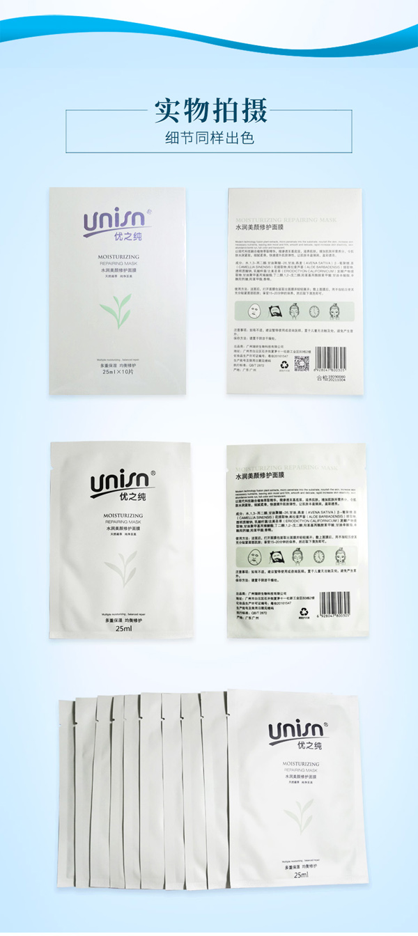 優(yōu)之純面膜,妝食同源水潤美顏,天然植物凝萃,很好的利用植物活性與養(yǎng)分,運用小分子技術,貼近肌膚,讓角質(zhì)層水潤充盈,