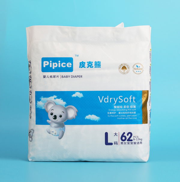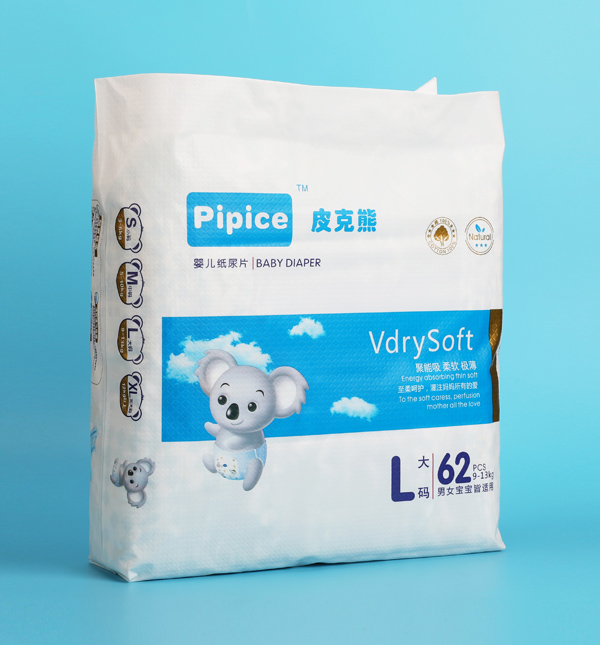 皮克熊紙尿褲采用國(guó)際優(yōu)質(zhì)柔軟材質(zhì),綿般柔軟舒適的高透氣性底膜,迅速有效的排出悶熱濕氣和氨氣,保持近皮膚觸感,清新無(wú)比。