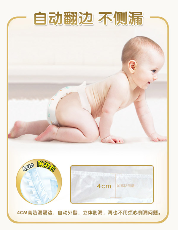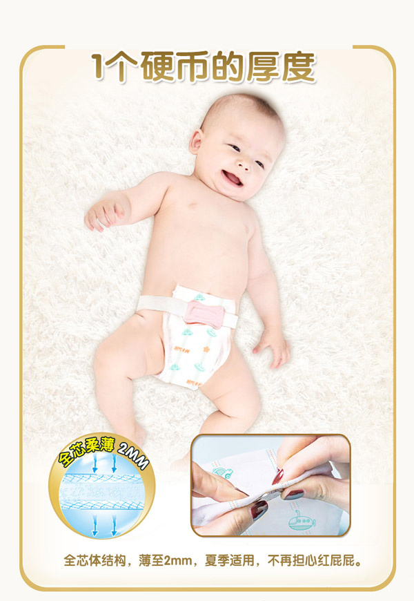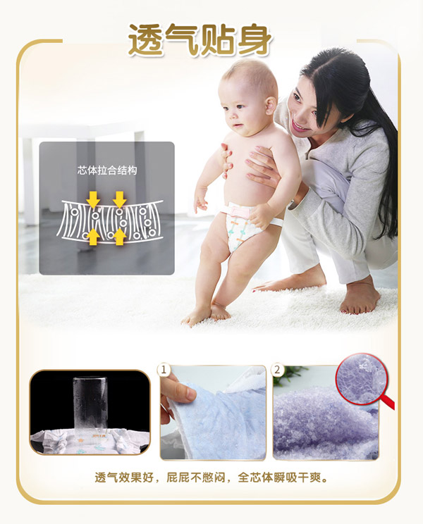 宜片無憂童趣紙尿褲采用熱風(fēng)材質(zhì),親膚柔軟,選用柔軟熱風(fēng)凸點(diǎn)無紡布作為面料,具有蓬松度高,彈性好,手感柔軟,透氣性好等特點(diǎn),寶寶穿著舒適,玩的開心,睡得安心。