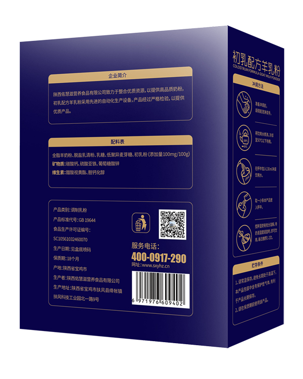 慧滋初乳配方羊乳粉十分注重優(yōu)選原料的重要性,源頭嚴(yán)格把控,安全純凈!更特別添加初乳粉,營養(yǎng)更豐富,且富含蛋白質(zhì)、維生素A、維生素D等成份,配比更科學(xué),且經(jīng)一系列嚴(yán)格工藝精制而成,品質(zhì)過硬!更有聽裝、盒裝兩種包裝形式,產(chǎn)品設(shè)計高端大氣,彰顯品質(zhì),必將火爆終端市場!
