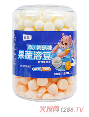 暖馨果蔬溶豆,有火龍果味、酸奶味、香蕉味、菠菜味,共四種口味,優(yōu)選原材烘焙而成,特別加入海藻糖,呵護消化吸收,好吃不膩。小小一個,適合拿取。雙層設(shè)計,享受不一樣的美味。