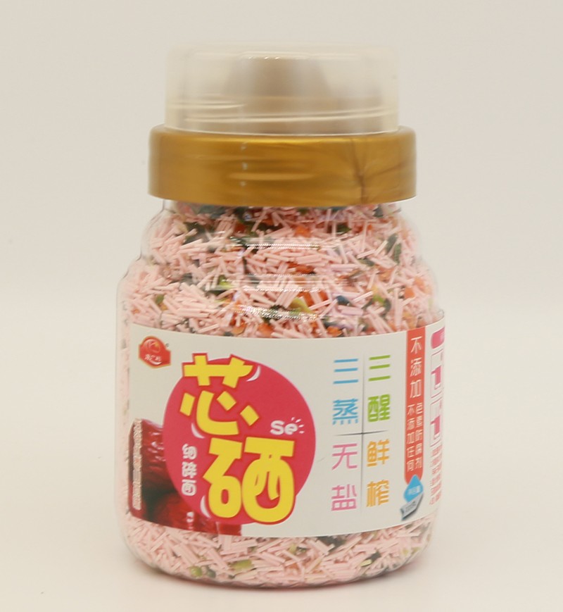 康廣利芯硒細(xì)碎面,采用麥芯粉、鮮榨蔬菜汁等優(yōu)質(zhì)食材制作,經(jīng)獨(dú)特用心調(diào)制,淡淡的雜糧和蔬菜香味進(jìn)入面條中,綠豆薏米菠菜味、五谷紅棗山藥味、鮮蝦海苔味、百合蓮子口味、多彩口味,多種不同口味,讓寶寶的味蕾開始旅行。三醒三蒸,無鹽鮮榨,不含色素、防腐劑、增白劑,健康安全。易煮不渾湯,造型獨(dú)特,面體爽滑,口感美味。罐裝設(shè)計(jì),易于存儲(chǔ),干凈衛(wèi)生,食用方便。