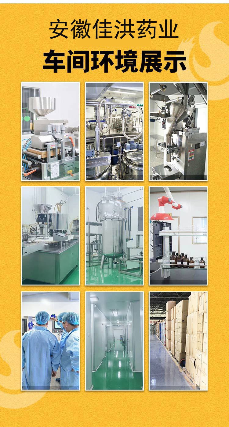 安徽佳洪健康產(chǎn)業(yè)有限公司位于全球最大的中藥材集散中心安徽亳州市,占地4600平方的現(xiàn)代化生產(chǎn)基地,其中生產(chǎn)車間占地2300平。倉儲(chǔ)面積2300平。國際先進(jìn)的生產(chǎn)檢測(cè)設(shè)備,固體制劑、口服液、軟膠囊、保健用品、消毒用品、醫(yī)療器械、代用茶等生產(chǎn)車間,可生產(chǎn)加工片劑、硬膠囊劑、軟膠囊劑、顆粒劑、粉劑、凝膠等劑型,提供最完善的一站式OEM加工服務(wù)。獨(dú)立的工藝布局走向,能夠?qū)崿F(xiàn)多品種、多劑型的同時(shí)聯(lián)動(dòng)生產(chǎn)和單一品種的獨(dú)立生產(chǎn)。創(chuàng)造獨(dú)立的品牌及品牌OEM基地。