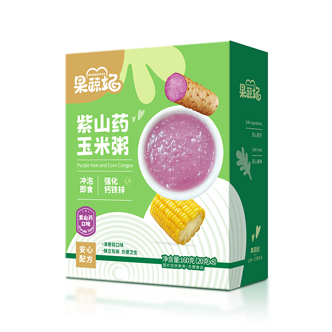 產(chǎn)品介紹:果蔬妃【鈣鐵鋅沖泡粥】選用無麩質(zhì)玉米粉為主料,強化鈣鐵鋅,加入低聚果糖益生元,健康輕口味不含白砂糖,沖泡即食,一分鐘泡好一碗粥,方便快捷,有紫山藥、南瓜和小米3種口味,適合6個月以上寶寶食用。