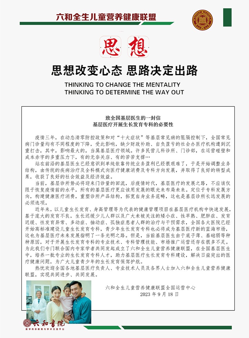六和全生療法是以中醫(yī)藥理論為核心,堅(jiān)持“五臟六腑以和為貴”的學(xué)術(shù)思想,將中醫(yī)外治療法和現(xiàn)代營養(yǎng)學(xué)相結(jié)合而形成的一種專業(yè)兒童青少年生長發(fā)育障礙的一種綜合療法。