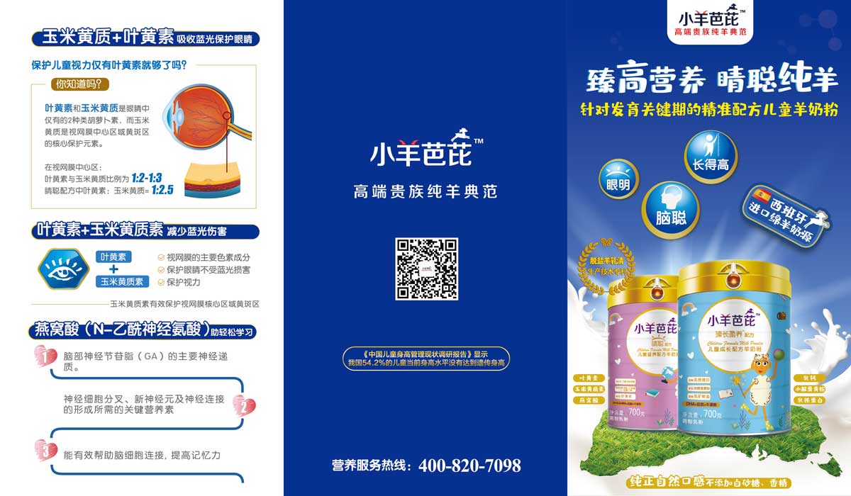 小羊芭芘為上海育博旗下專(zhuān)業(yè)兒童配方純羊奶粉。