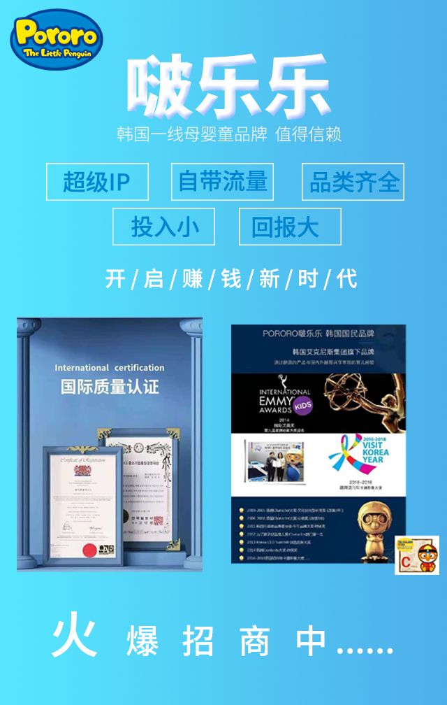 中國(guó)杭州浩康文化傳播有限公司,是韓國(guó)啵樂(lè)樂(lè)Pororo品牌在中國(guó)大陸地區(qū)唯一指定的全品類運(yùn)營(yíng)商。