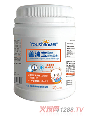 幼善植物固體飲料,有善消寶、善清寶、善啤寶、金膳通、蒲公英甘草五大配方單品,傳承經(jīng)典草本配方,科學(xué)配比,均衡營養(yǎng)。幼善植物固體飲料易溶解,易沖調(diào),口感酸甜,小朋友們喜歡,家長更放心。