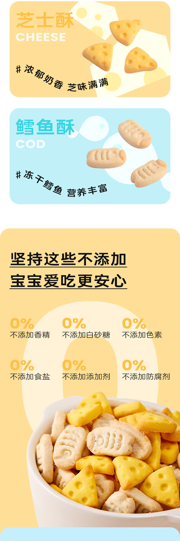 藍(lán)貝多多驚喜多多小酥餅,添加鱈魚&芝士,拒絕多余添加,雙拼口味,雙重滿足,低溫烘焙, 非油炸,保留食材中的營(yíng)養(yǎng)成分,鎖住食材色香味,海藻糖更益牙,不會(huì)引起齲齒,獨(dú)立小包,定時(shí)定量。
