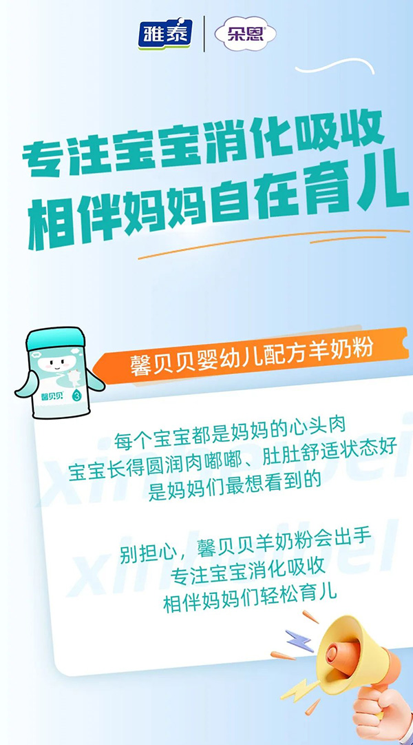 別擔(dān)心,馨貝貝羊奶粉來(lái)啦,專(zhuān)注寶寶消化吸收,相伴媽媽們輕松育兒。
