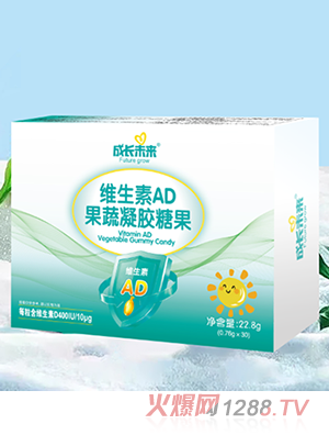 針對這一需求,成長未來品牌推出了維生素AD果蔬凝膠糖果。該產(chǎn)品每盒凈含量為22.8克,內(nèi)含30粒獨立包裝的糖果,每粒規(guī)格為0.76克。其核心營養(yǎng)成分明確,每粒含有維生素D 400國際單位(IU),相當于10微克(μg)。這種精準的劑量設(shè)計,旨在為兒童提供日常所需的維生素D補充。