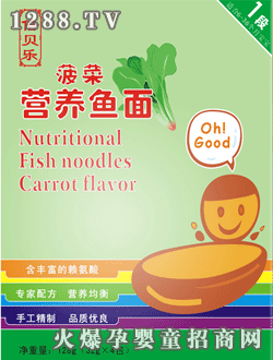 倍貝樂(lè)海苔營(yíng)養(yǎng)魚面是深圳市弘添喜商貿(mào)有限公司旗下產(chǎn)品,采用現(xiàn)代生產(chǎn)設(shè)備,結(jié)合百年手工工藝,將先進(jìn)、科學(xué)的營(yíng)養(yǎng)配方融入傳統(tǒng)食品、針對(duì)生理特點(diǎn)研制而制成,松軟可口,營(yíng)養(yǎng)豐富,適合8-36個(gè)月食用。