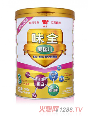 味全公司是亞洲個(gè)研制嬰兒配方奶粉的企業(yè),自1967年開始,至今已有50多年的嬰兒奶制品經(jīng)驗(yàn)。其產(chǎn)品系列包括孕婦媽咪系列,針對不同階段媽媽的生理特點(diǎn)和營養(yǎng)需求,增添多種礦物質(zhì)和維生素,滿足孕期媽媽的營養(yǎng)。全營養(yǎng)3優(yōu)系列,促進(jìn)腦部發(fā)育。雙優(yōu)系列,呵護(hù)bao--bao腸胃健康,增強(qiáng)體質(zhì)。健護(hù)系列,為bao--bao打下健康體質(zhì)基礎(chǔ)。歐貝兒系列,針對針對0-6個(gè)月、6-12個(gè)月及1-3歲的中國bao--bao生長需要精心配制的新一代營養(yǎng)奶粉。
