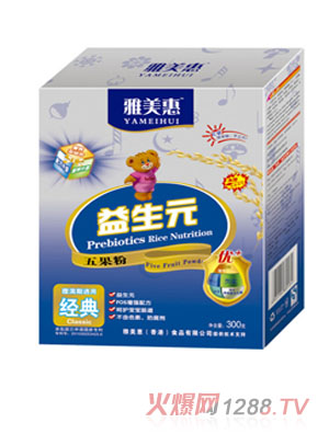 大家都知道,的抵抗力是非常低的,而且消化功能也正在發(fā)展,因此很容易產(chǎn)生腹瀉現(xiàn)象。雅美惠250g盒裝經(jīng)典五果粉,特別針對(duì)腹瀉期而研制,富含有大量益生元、FOS增強(qiáng)配方,增強(qiáng)抵抗力,促進(jìn)對(duì)營(yíng)養(yǎng)的消化吸收。