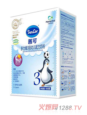 善可嬰兒特殊配方奶粉至上市以來為許多bao--bao因母乳不足帶了福音,為媽媽解決了母乳不足的煩惱。善可奶粉進(jìn)口,綠色安全,全天然,不添加任何蔗糖、香精香料、麥芽糊精,無抗生素、無化學(xué)農(nóng)藥殘留等,口味清淡天然醇正。媽媽的味道,bao--bao愛喝,不易上火。