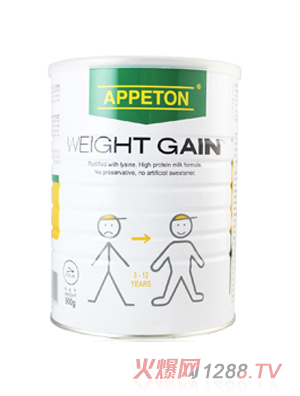 蛋白質(zhì)效率是衡量某種蛋白質(zhì)的增加體重的能力。研究顯示含賴氨酸高的蛋白質(zhì)的作用比更高。Appeton Weight Gain (Child)富含多種賴氨酸含量高的氨基酸,能夠有效提高PER值。一般的增重蛋白質(zhì)營養(yǎng)品的PER值為2.5,而Appeton Weight Gain (Child)的PER值則高達3.1。