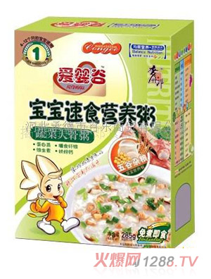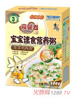 很多父母都知道菠菜中含有豐富的營(yíng)養(yǎng)物質(zhì),這些營(yíng)養(yǎng)物質(zhì)對(duì)bao--bao的健康很重要,因此父母應(yīng)給bao--bao適當(dāng)?shù)难a(bǔ)充一些菠菜。下面小編就給大家推薦一款不錯(cuò)的嬰童營(yíng)養(yǎng)輔食--愛(ài)嬰谷菠菜大骨粥。愛(ài)嬰谷菠菜大骨粥以?xún)?yōu)質(zhì)天然菠菜和優(yōu)質(zhì)大骨為原料,同時(shí)又經(jīng)過(guò)特殊制作工藝精心制作而成,營(yíng)養(yǎng)豐富均衡,是理想的嬰童營(yíng)養(yǎng)輔食。
