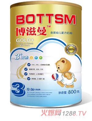 博滋曼3段金裝較大嬰兒配方奶粉適合年齡:12-36個(gè)月bao--bao,規(guī)格:178g合裝 800g聽裝。添加a-乳清蛋白 L-肉堿 DHA/AA增強(qiáng)bao--bao腦部發(fā)育。特別添加CPP促進(jìn)鈣的吸收,調(diào)整鈣磷比值與礦物質(zhì)均衡,乳鐵蛋白、五種核苷酸,B-胡蘿卜素、硒促進(jìn)嬰兒的免疫反應(yīng), 提高抗病毒能力。