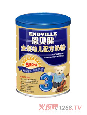 恩貝健金裝兒童成長奶粉由恩貝健營養(yǎng)品研究中心根據(jù)中國兒童生長發(fā)育需求,最新研制的為3~7歲兒童食用的兒童成長奶粉。產(chǎn)品參照世界衛(wèi)生組織(WHO)、國際標(biāo)準(zhǔn)化組織(ISO)、國際乳品聯(lián)合會(IDF)和中國國家相關(guān)的標(biāo)準(zhǔn)要求設(shè)計,特別添加了FOS低聚果糖(益生元)和二十二碳六烯酸DHA、花生四烯酸ARA;同時添加了膽堿、;撬帷⑩}、鐵、鋅等多種營養(yǎng)物質(zhì),對處于旺盛生長發(fā)育期的兒童提供全面、合理、均衡的營養(yǎng)呵護(hù)。