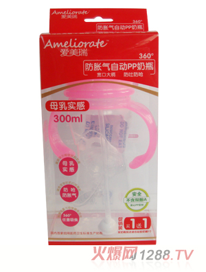 愛美瑞寬口防脹氣奶瓶,采用自動吸管,不需倒立式吸奶方式,任何姿勢都可以讓bao--bao喝到乳汁。防脹氣,自動吸管,材質(zhì)更安全,設(shè)計更合理,讓bao--bao用著舒心,盡情享受!