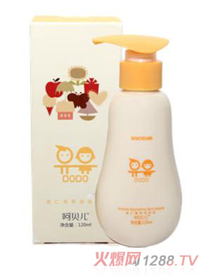 潤(rùn)膚露:含水量高,質(zhì)地稀薄,涂上后水水的,有透明感,可用來(lái)全身各部位的保濕,也可用來(lái)擦臉。使用時(shí)不要直接倒在bao--bao身上搓。適合夏天,秋天、春天使用。推薦產(chǎn)品:呵貝兒薏米嫩白潤(rùn)膚乳,呵貝兒杏仁滋養(yǎng)潤(rùn)膚乳。