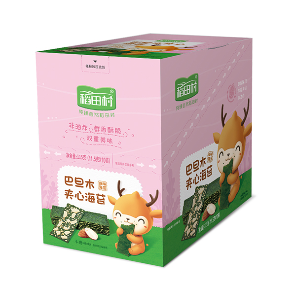 稻田村夾心海苔,鮮香酥脆,雙重美味。不加食品添加劑;不加醬油、不加味精;不加食用油,烘焙非油炸;選用品質(zhì)紫菜,色澤自然墨綠,片薄均勻,鮮嫩有光澤,有紫菜本身的清香;科學(xué)搭配紫菜與酥脆夾心的比例,甜度適中,口感鮮香。