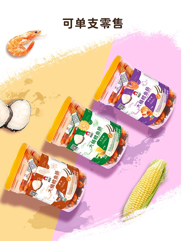 果蔬妃【大桶鱈魚腸】營養(yǎng)豐富,韌彈嫩滑,不添加人工香精、色素和防腐劑,在堅(jiān)持安全配方的基礎(chǔ)上,單支獨(dú)立條碼,真正可以單支銷售!一桶50支,20克每支,有原味、玉米和鮮蝦3種口味可選!