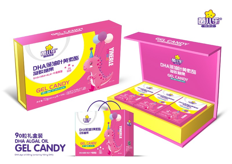 其中,茵兒樂DHA藻油葉黃素酯凝膠糖果,DHA+ARA+ALA+葉黃素酯,3A配方,每克添加了DHA藻油300mg(含DHA 150mg),亞麻籽油22.5mg(含ALA≥10.0mg),花生四烯酸油脂18.8mg(含ARA≥8.0mg),葉黃素酯5.1mg,高含量,營養(yǎng)多,90粒禮盒裝,品質(zhì)保證,更實(shí)惠,更大氣!