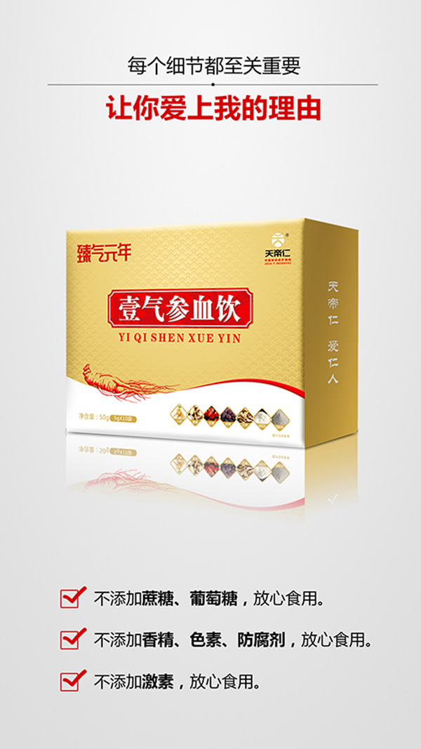 生命益元素臻氣元年,地道選材,用料上乘,以人參、黃精、血橙、甘草、桑椹等為主要原料,藥食同源配方,添加膠原蛋白肽、維生素C,科學(xué)配比,營(yíng)養(yǎng)均衡。