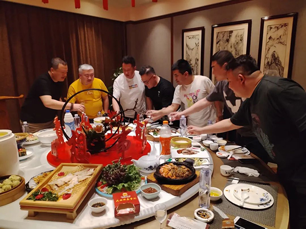 菲瑞營銷中心總經理及銷售總監(jiān)陪同貴客,在當天的“歡迎晚宴”和遠道而來的“家人們”一起談未來、講生活,大家如親人般相談甚歡。