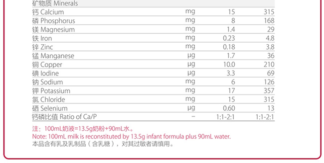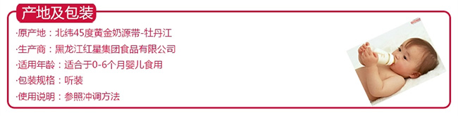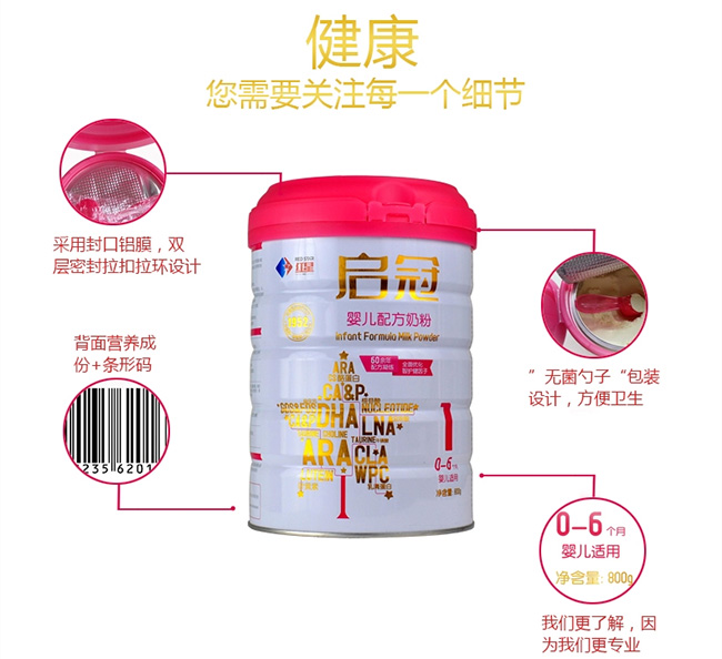 均衡營養(yǎng),消化是關鍵。 0-6個月是寶貝一生中成長最快的階段,此時寶貝的腸胃消化系統(tǒng)還很柔弱,保證營養(yǎng)的易消化吸收非常重要。紅星采用母乳營養(yǎng)配比結構,讓寶貝輕松消化,營養(yǎng)快吸收。 紅星啟冠,專為0-6個月中國寶寶科學研制的嬰兒配方奶粉: 優(yōu)化多種益生元組合(GOS\FOS),有助提高寶寶腸道吸收; 營養(yǎng)學推薦比例DHA、ARA配比,促進寶寶智力和記憶力發(fā)育; 適宜的鈣磷(Ca&P)配比,促進鈣質好吸收,促進寶寶骨骼發(fā)育; 優(yōu)化α-乳清蛋白和β-酪蛋白配比,提升18%; 高品質α-亞麻酸,促進寶寶組織細胞發(fā)育。 |